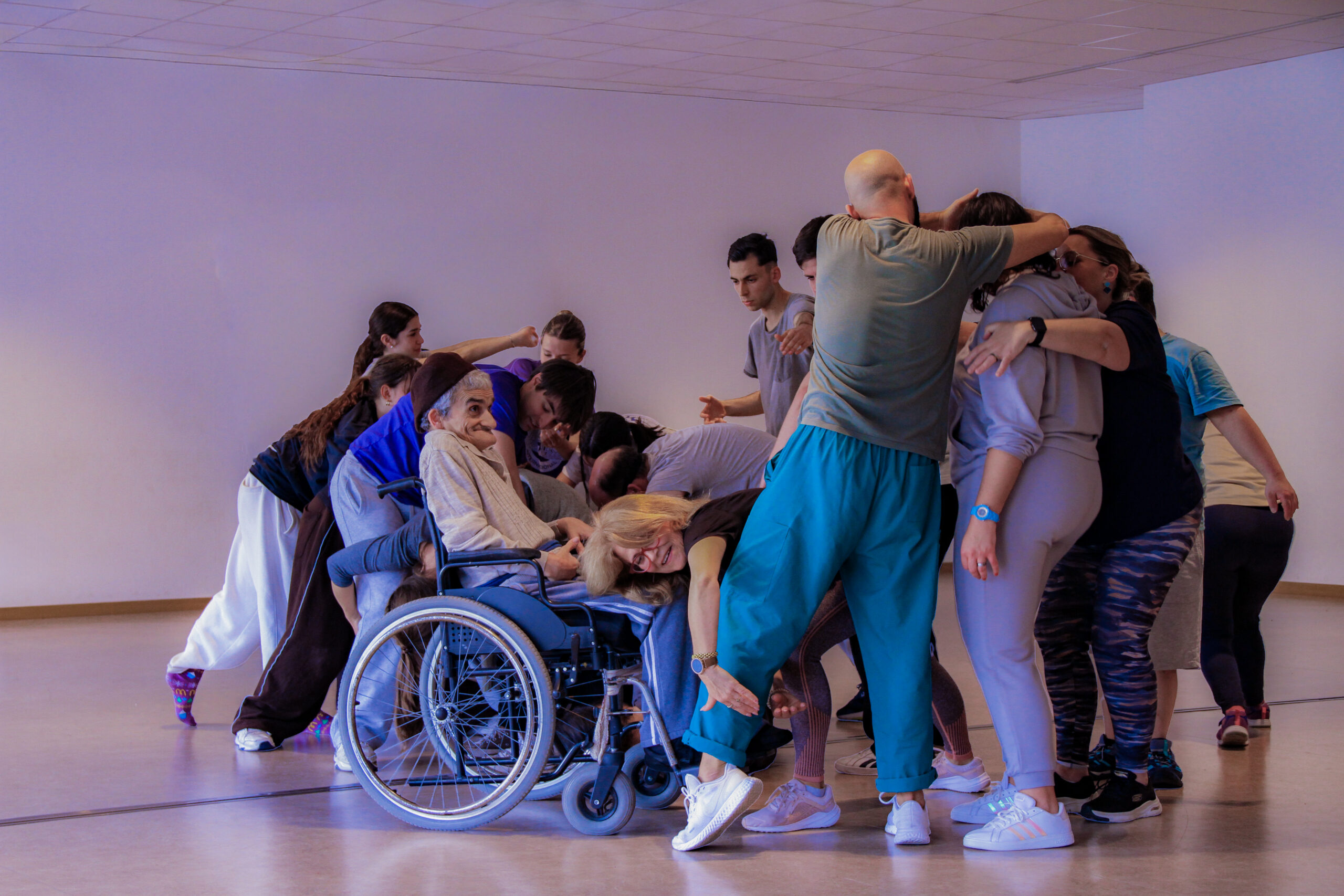 Movimentos criados com as pessoas e para as pessoas, numa procissão alegórica de caminhadas que se cruzam. Passam de um lado para o outro sobre uma ponte invisível, onde não existem lados, nem eu e o outro, nem eles e nós. A ponte, através de todos, é apenas a passagem para chegar à celebração do movimento, do som e da imagem. Uma caminhada quase infinita, onde os encontros fazem nascer o inesperado, num elogio à vida. De forma invisível, o lugar e a paisagem transformam-se — e transformam-nos a todos.